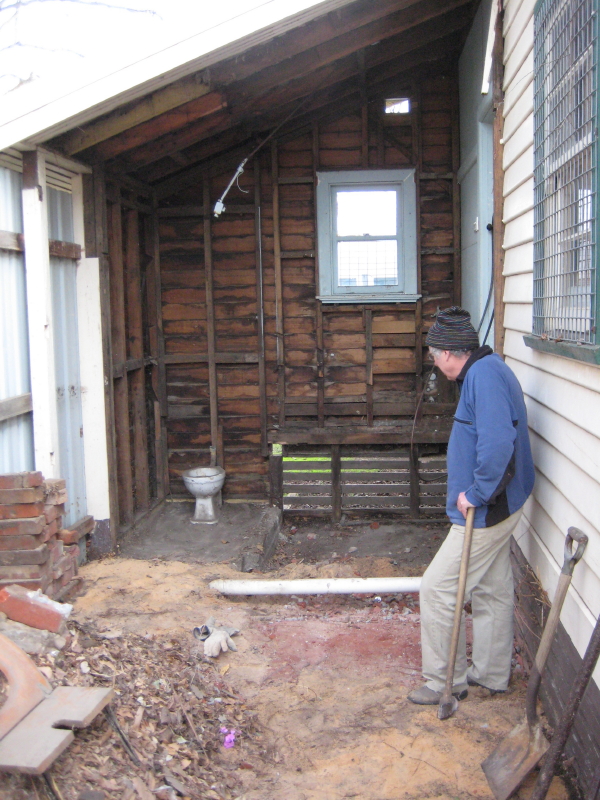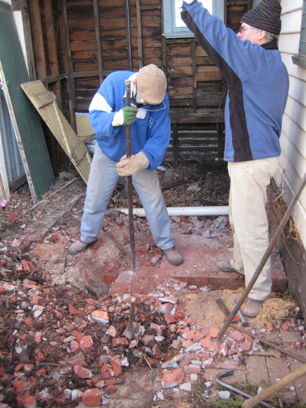 Tom and Mark at work demolishing the area for the new EU storeroom (about the size of a garage) at the ELC (East Leisure Centre – just south of the Coles and Woolworth carpark in downtown Ballarat):